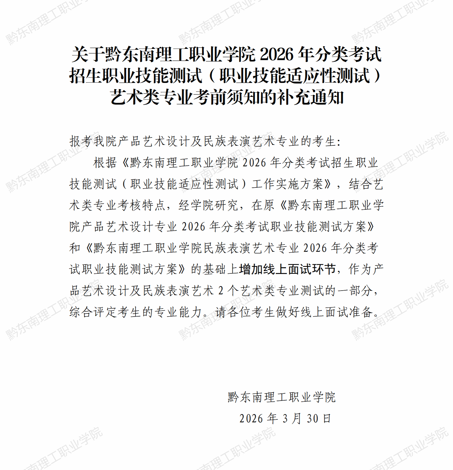 下一条:黔东南理工职业学院2026年分类考试招生职业技能测试(职业技能适应性测试) 准考证打印指南